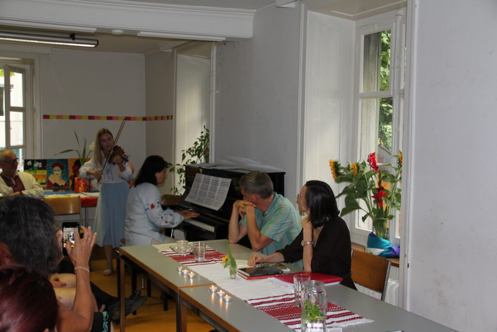 Die Geigerin und Sängerin Maria Perekrestenko und ihre Mutter Olga Petrova sangen ukrainische Lieder und spielten wunderschöne ukrainische Musik. Maria Perekrestenko hat am Luzerner Musikkonservatorium studiert, momentan macht sie den Master in Pädagogik. Marias Familie wohnt eigentlich in Kyiv. Olga Petrova ist professionelle Pianistin und Musikwissenschaftlerin. Seit 25 Jahren unterrichtet sie an der Glier Akademie in Kyiv. Am 3. März ist sie wegen dem Krieg in die Schweiz geflüchtet.